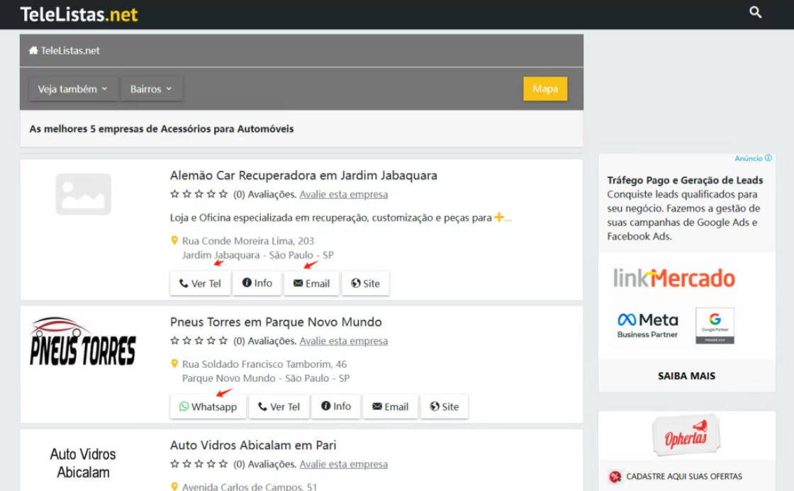 巴西常用的电话号码和企业名录网站之一。信息非常全面,除了基本的公司名称、地址和电话,还提供地图定位、用户评价等功能。